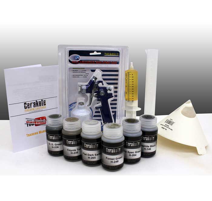- Six 118mls (4oz) bottles of Cerakote in your choice of colors with hardener