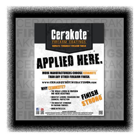 Perfect to display inside your shop to let customers know that you offer Cerakote, the industry standard in firearm finishes.